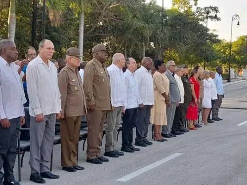 Salvador Valdés Mesa, miembro del Buró Político y Vicepresidente de la República de Cuba encabezó la ceremonia ante el monumento funerario, ubicado en el sendero de los Próceres de la Nación, donde fue colocada una ofrenda floral a nombre del Pueblo de Cuba.