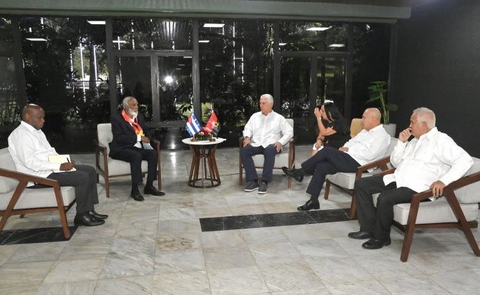 Miguel Díaz-Canel Bermúdez, Primer Secretario del Comité Central del Partido Comunista de Cuba (PCC) y Presidente de la República, sostuvo este sábado en La Habana un encuentro con Mário Pinto de Andrade, miembro del Buró Político del Movimiento Popular para la Liberación de Angola (MPLA) y secretario de Reforma del Estado, Administración y Gobierno Local, en el cual reafirmaron la solidez y continuidad de las relaciones entre las dos organizaciones políticas.