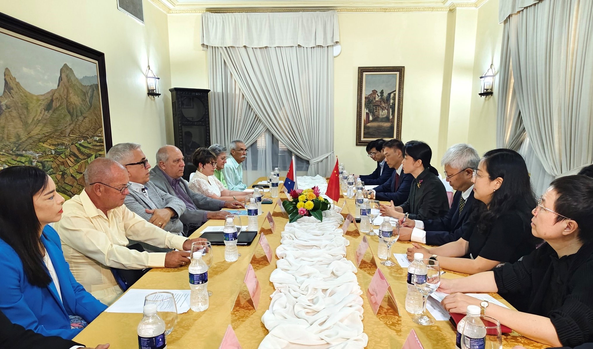 Por su parte, el embajador de China en Cuba, Hua Xin, señaló que este encuentro representa una oportunidad estratégica para profundizar los nexos entre ambos estados en beneficio del desarrollo compartido de sus pueblos, y complementa el trabajo que la misión diplomática china desarrolla para alcanzar tales fines.