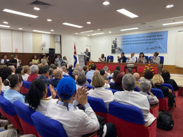 En el acto por el Día de la Ciencia Cubana, participaron el ministro de Salud Pública, José Ángel Portal Miranda; la vicetitular del Ministerio de Ciencia, Tecnología y Medio Ambiente de Cuba, Adianez Tabaoada; el presidente de la ACC, Dr. Cs. Luis Velázquez Pérez, y Miguel Hernán Estévez, director de la institución hospitalaria, entre otros.