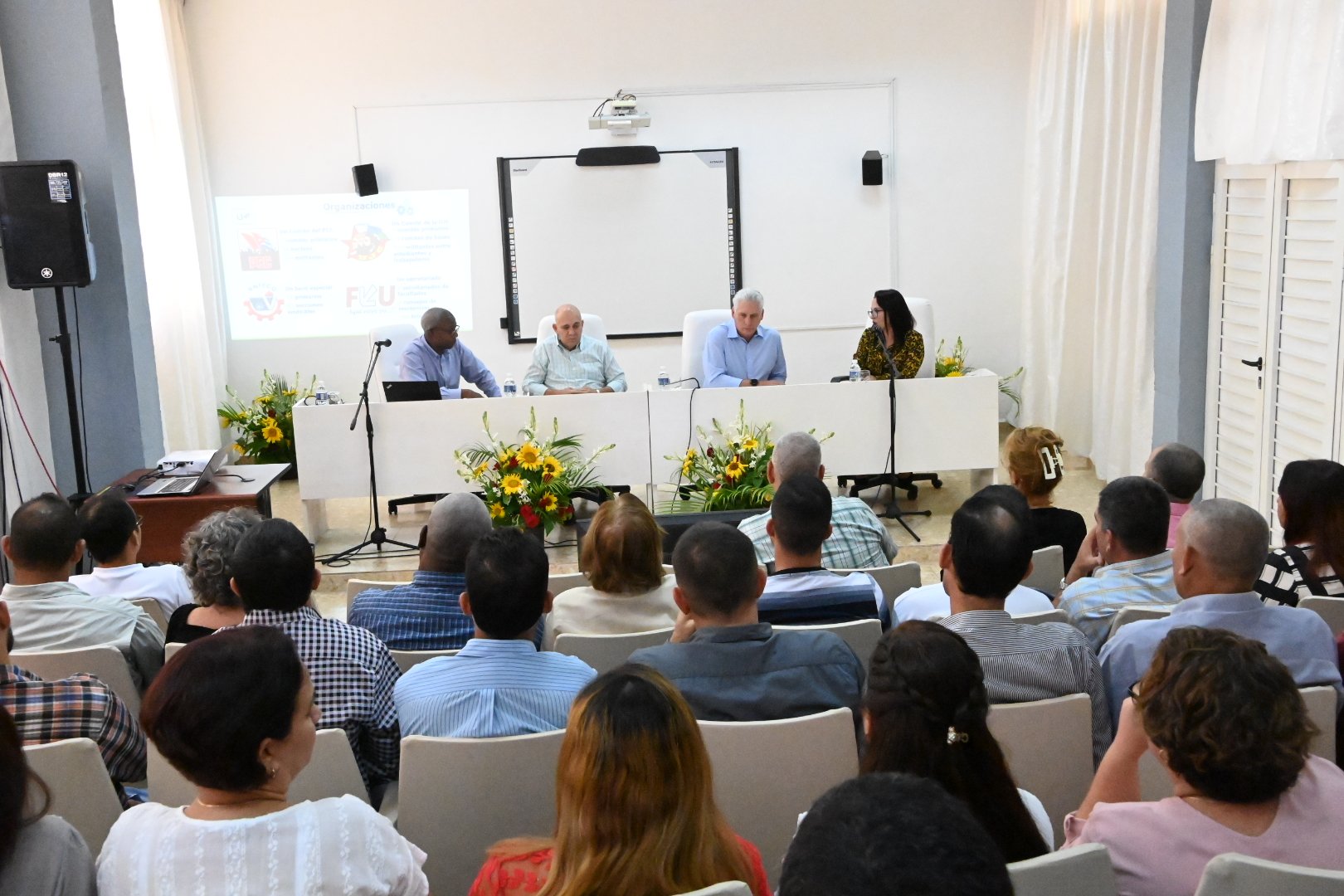El mandatario, en intercambio con integrantes del PCC y la Asamblea Municipal del Poder Popular, comentó sobre la relevante labor realizada por la Universidad de Holguín en los proyectos dirigidos a lograr un acompañamiento más efectivo a los gobiernos provincial y municipales para la ejecución de sus estrategias de desarrollo.