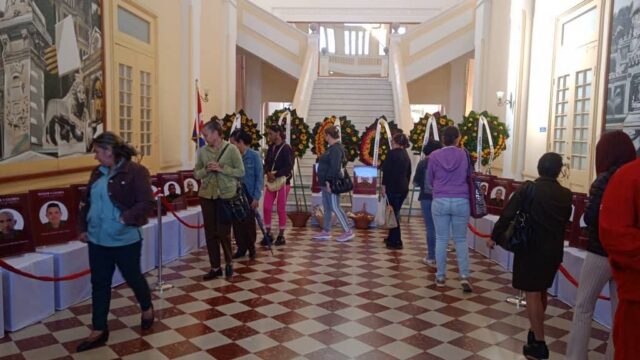 Los camagueyanos tomaron por asalto el Salón de Protocolo Nicolás Guillén Batista, en la base del monumento de la Plaza de la Revolución Mayor General Ignacio Agramonte Loynaz, para rendir homenaje póstumo a los combatientes caídos heroicamente durante el criminal ataque de Estados Unidos contra Venezuela.
